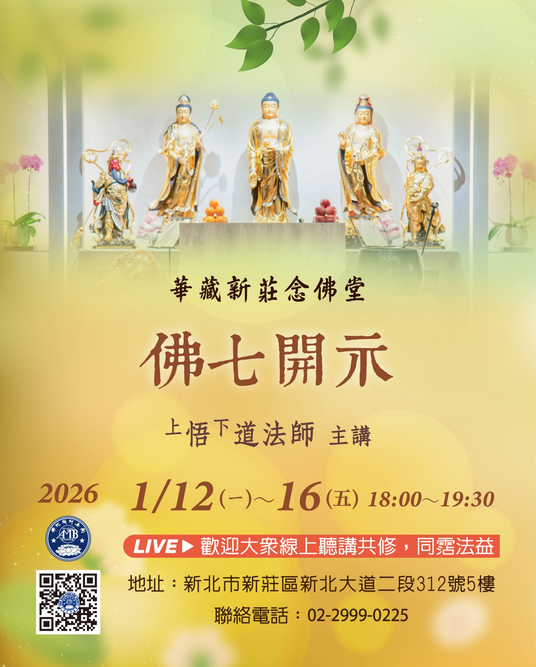 1/12~16 悟道法師講經 線上直播|佛七開示