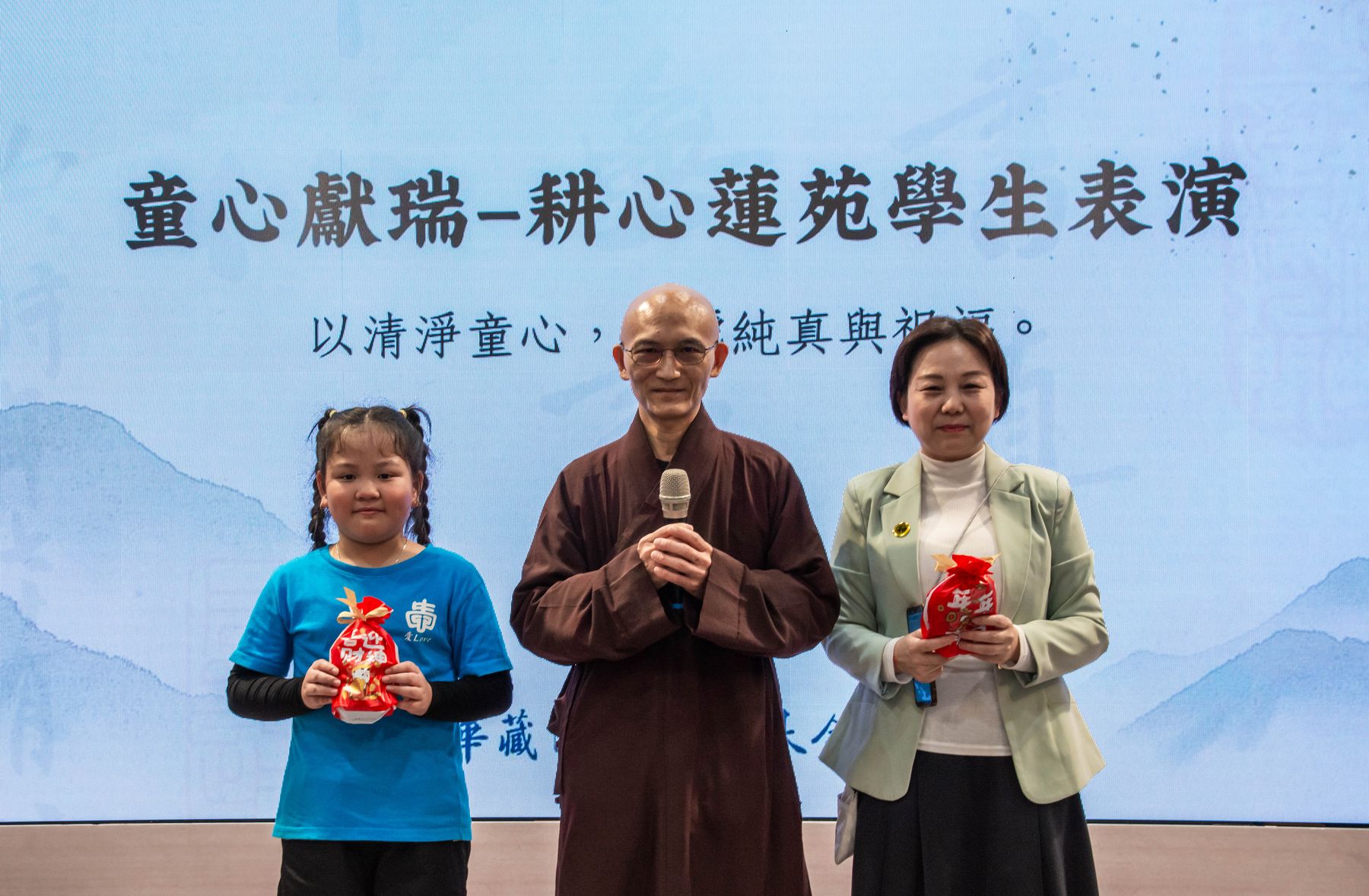 隨後「童心獻瑞」由耕心蓮苑小朋友帶來純真演出,清淨童心,為書展注入明亮而柔軟的祝福,現場掌聲與笑容交織。