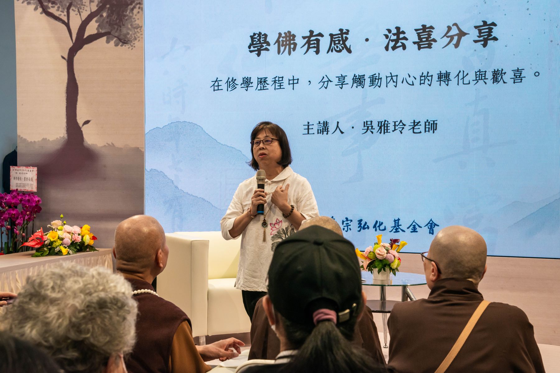最後精彩的「學佛有感・法喜分享」,吳雅玲老師以真實修學歷程,分享生命轉化的點滴,字字樸實,句句動人,讓聽眾在平凡故事中,感受學佛帶來的安定與歡喜。