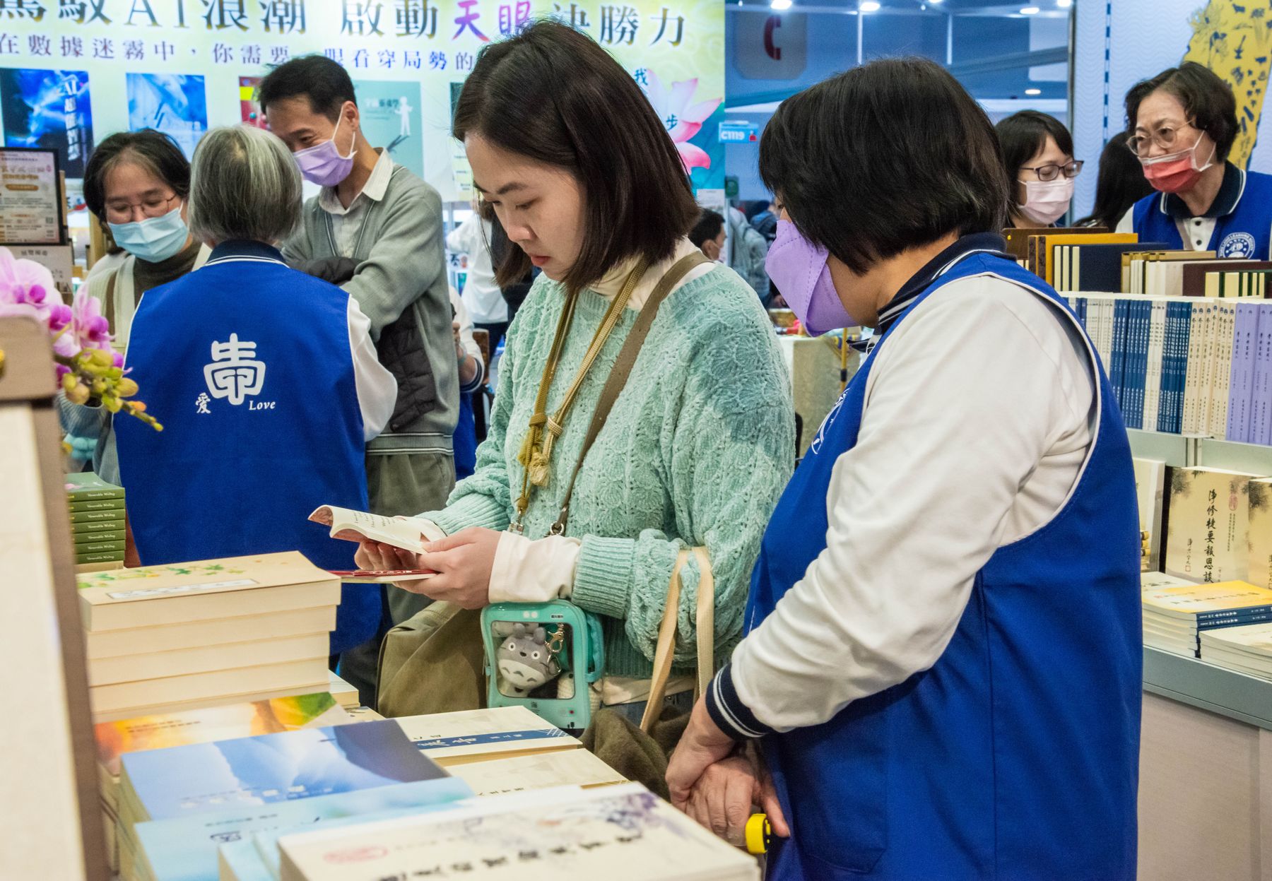 2/4(三)台北國際書展華藏展區,現場人潮絡繹不絕,氣氛歡喜且溫暖,上悟下道法師與多位貴賓親臨會場,共同見證法教的傳承與感動。
