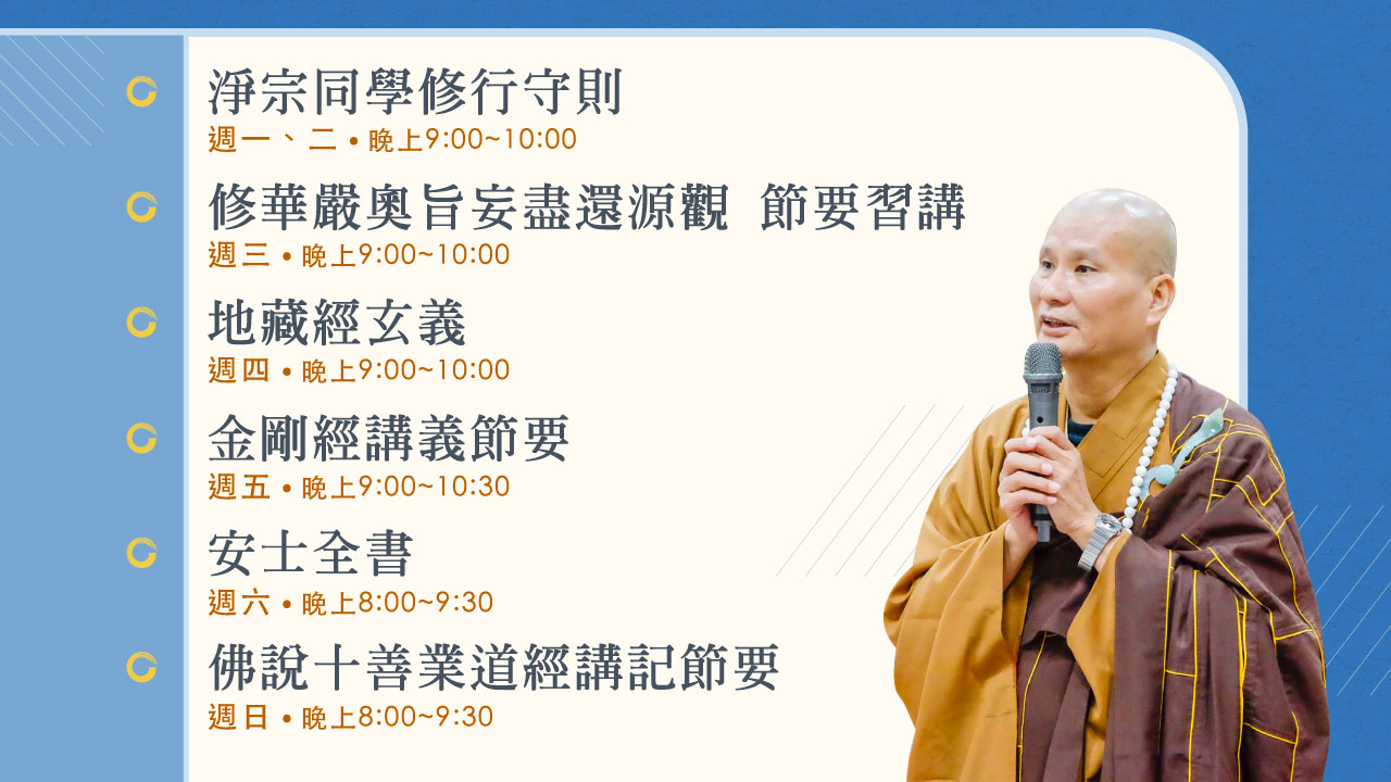 2/11(三)晚上7:00華藏念佛堂恭請悟道法師宣講《金剛經講義節要》,網路直播,歡迎大家線上聽講,同霑法益。相關資訊敬請參閱…