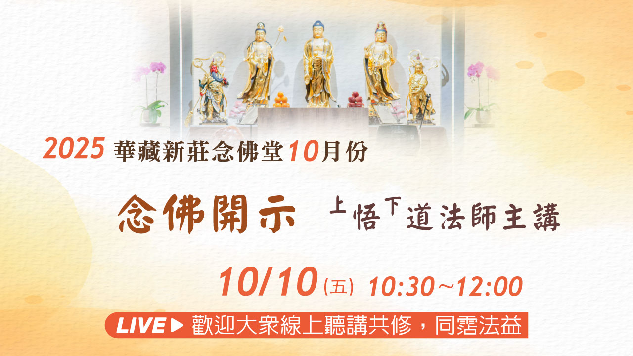 10月12~18日佛七念佛共修,實習主七 莊明法師;19日三時繫念法會,實習主法 莊霖法師,佛七及法會網路直播。歡迎網路線上同步共修。相關資訊請參閱…