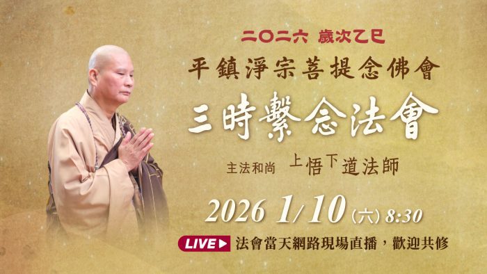即日起於網路電視「淨空老法師」頻道,每日09:30-10:00,以及21:30-22:00,播出道法師領眾持誦彌陀聖號,歡迎全球同修同步念佛護世息災,祈願世間諸災障盡能消除,或者點播以下影片共修,阿彌陀佛。