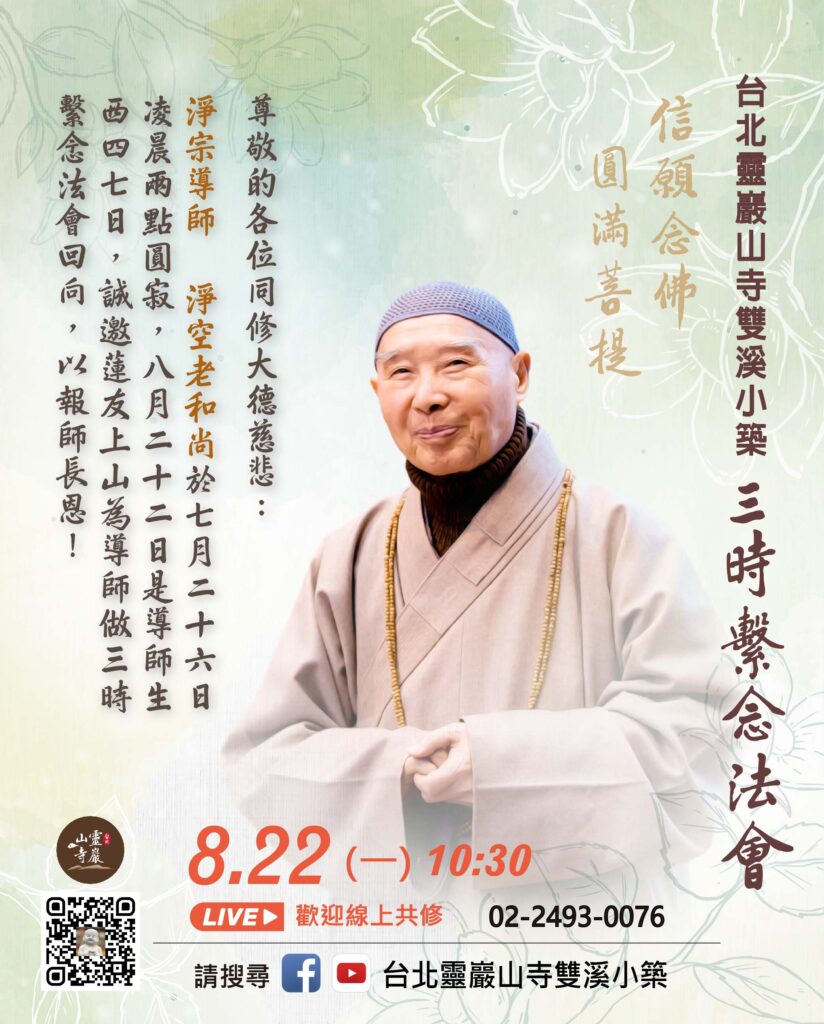 8/22線上直播共修|淨宗導師 上淨下空老和尚圓寂四七報恩三時繫念法會
