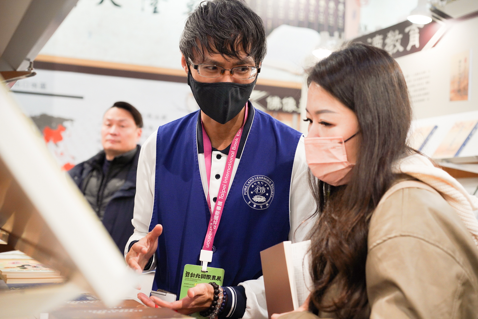 其次,我們由衷感謝吳雅玲老師,在書展前協助培訓義工的儀態及接待禮儀,並在書展期間主持座談會,與來賓共同探討、分享對佛法的理解與感悟。此外,吳老師還為觀展的朋友介紹了《認識佛教》一書,並分享了她的讀書心得,讓大家對佛法有了更深入的認識。同時,我們也要感謝滿居士在書展期間,為來賓朋友介紹了《佛說阿彌陀經》、《觀無量壽佛經》、《金剛經》、《心經》等重要的大乘經典,讓更多人接觸到佛法的精髓。