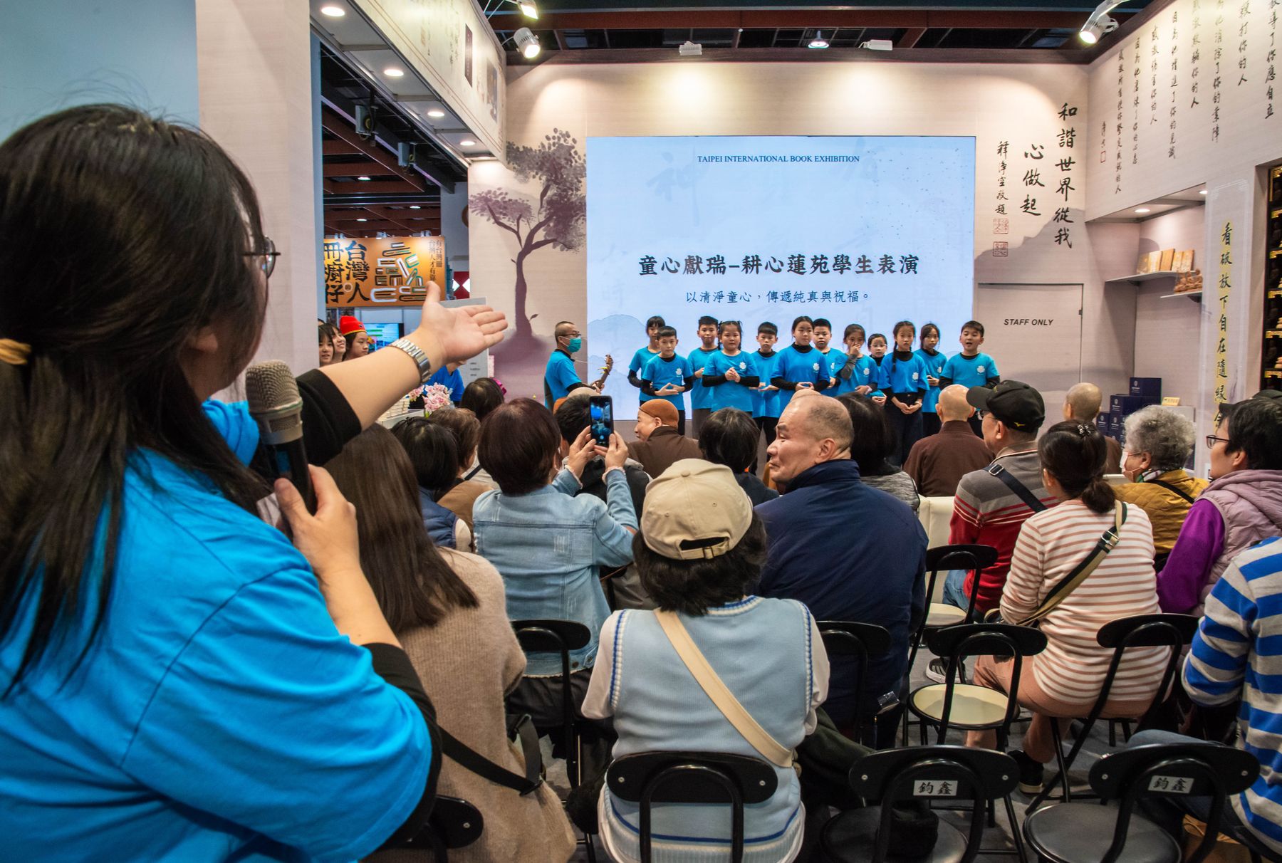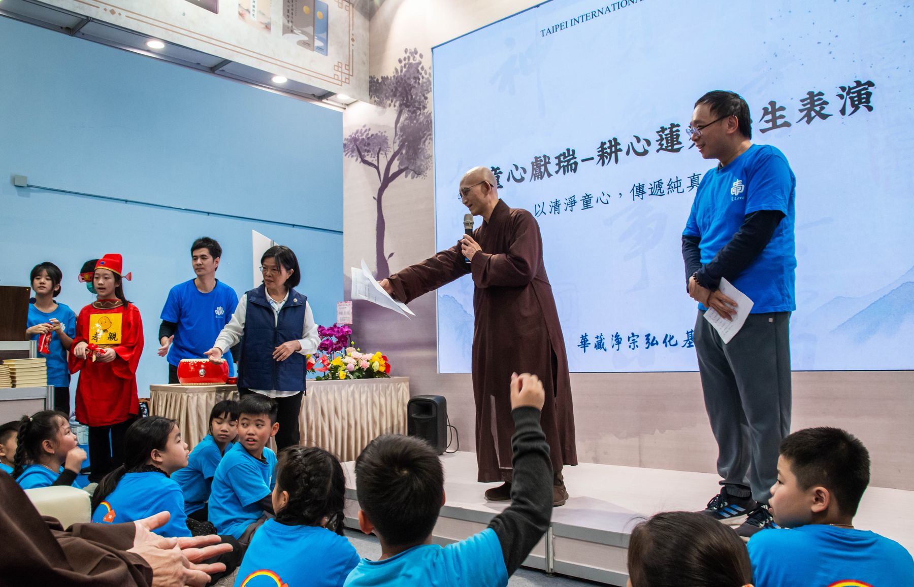 隨後「童心獻瑞」由耕心蓮苑小朋友帶來純真演出,清淨童心,為書展注入明亮而柔軟的祝福,現場掌聲與笑容交織。